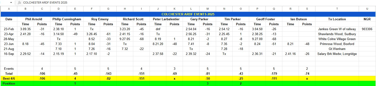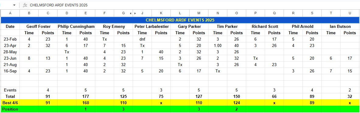 Detailed Results for Colchester League 1997 - 2001